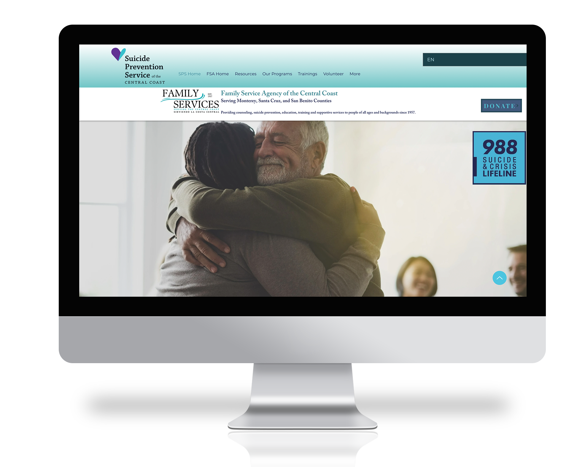 As a web designer for Precious Stone PR, a public relations team focusing on community outreach programs, my primary task was to build a website for Suicide Prevention Services of the Central Coast, a subset of the Family Service Agency of the Central Coast (FSA).